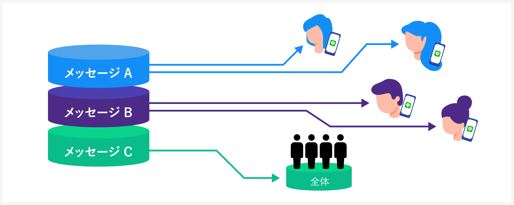 ユーザの属性を指定して、メッセージ予約配信。一度設定すれば、自動で定期配信。